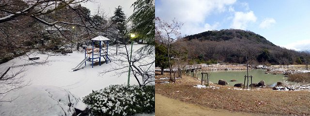 ずいぶん大きくなりました。北山貯水池の横の公園では子供たちがお父さんと