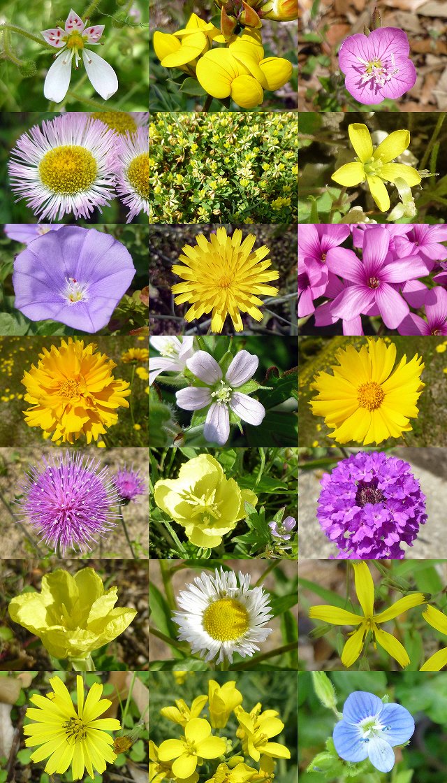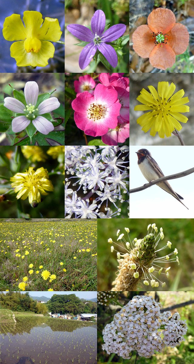 ジシバリ、ニガナ、マツヨイグサ、ユウゲショウ、カタバミ、ニワゼキショウ、