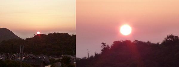 見ると甲山の山頂近くから昇るのですが、この時期ははるか南から太陽が出て
