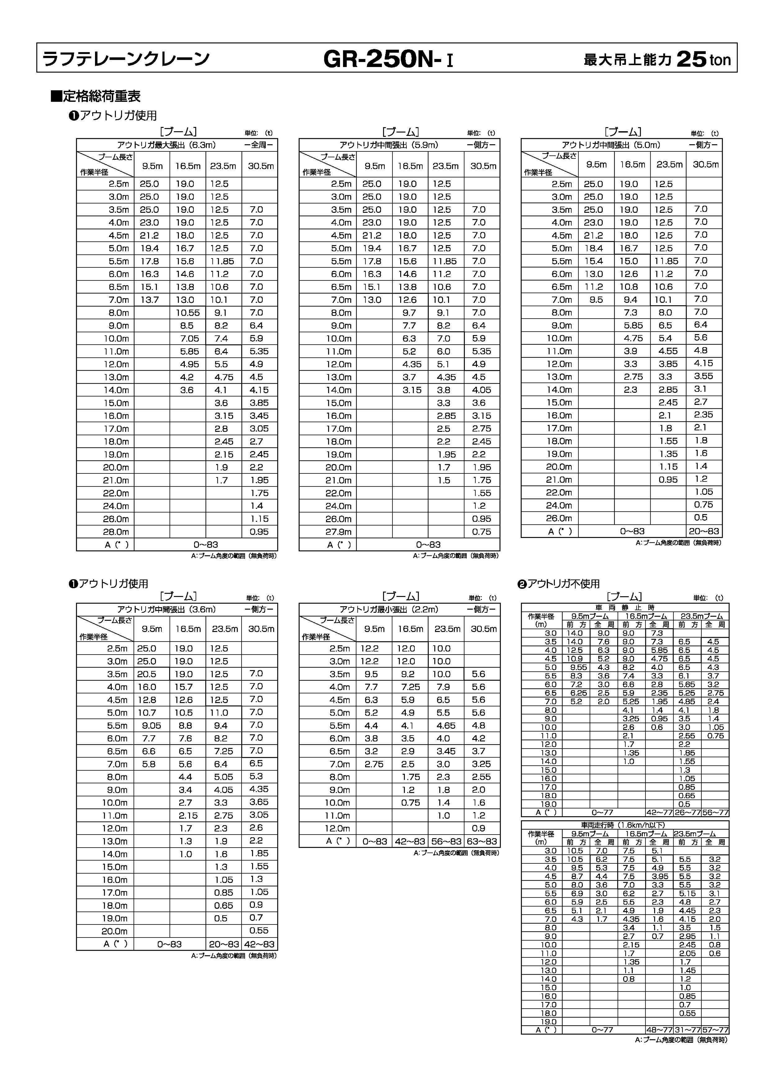 | 定格総荷重表(アウトリガー不使用) | 965KB | 91KB |